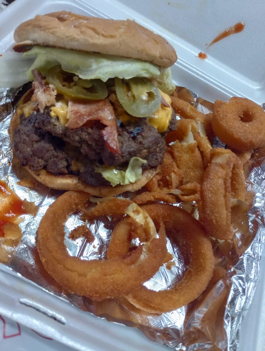 Double Meat Cheeseburger with Added Bacon and Jalapenos
